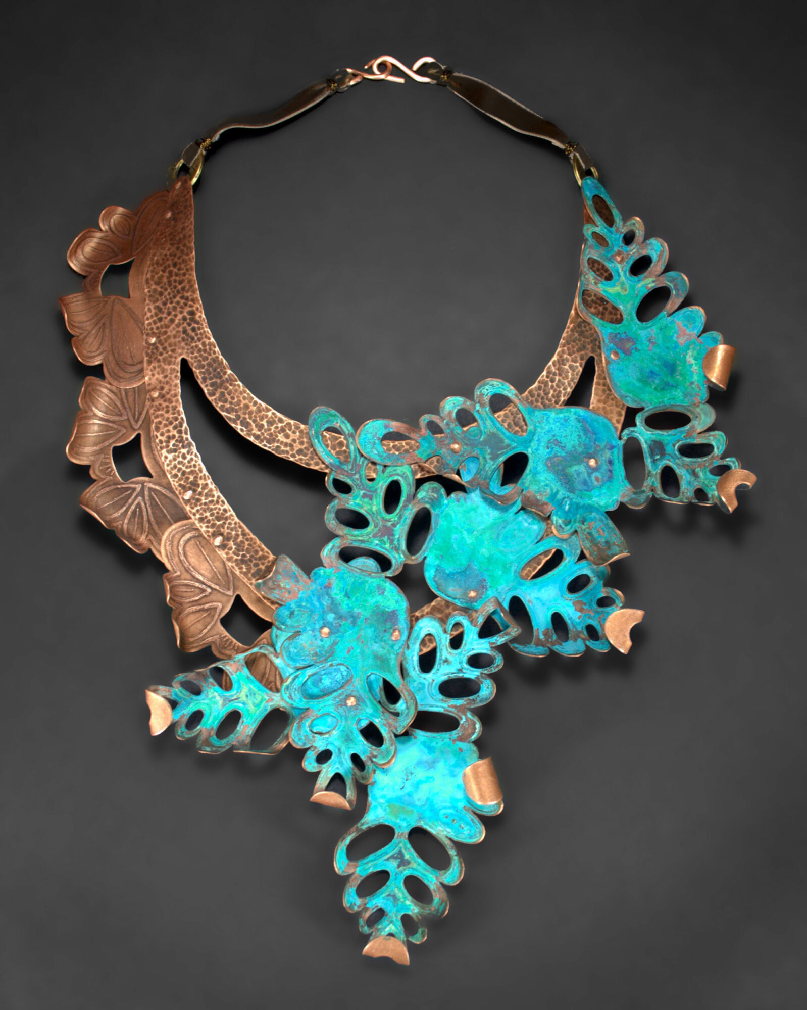 Medium: Copper sheet, wire, velvet ribbon