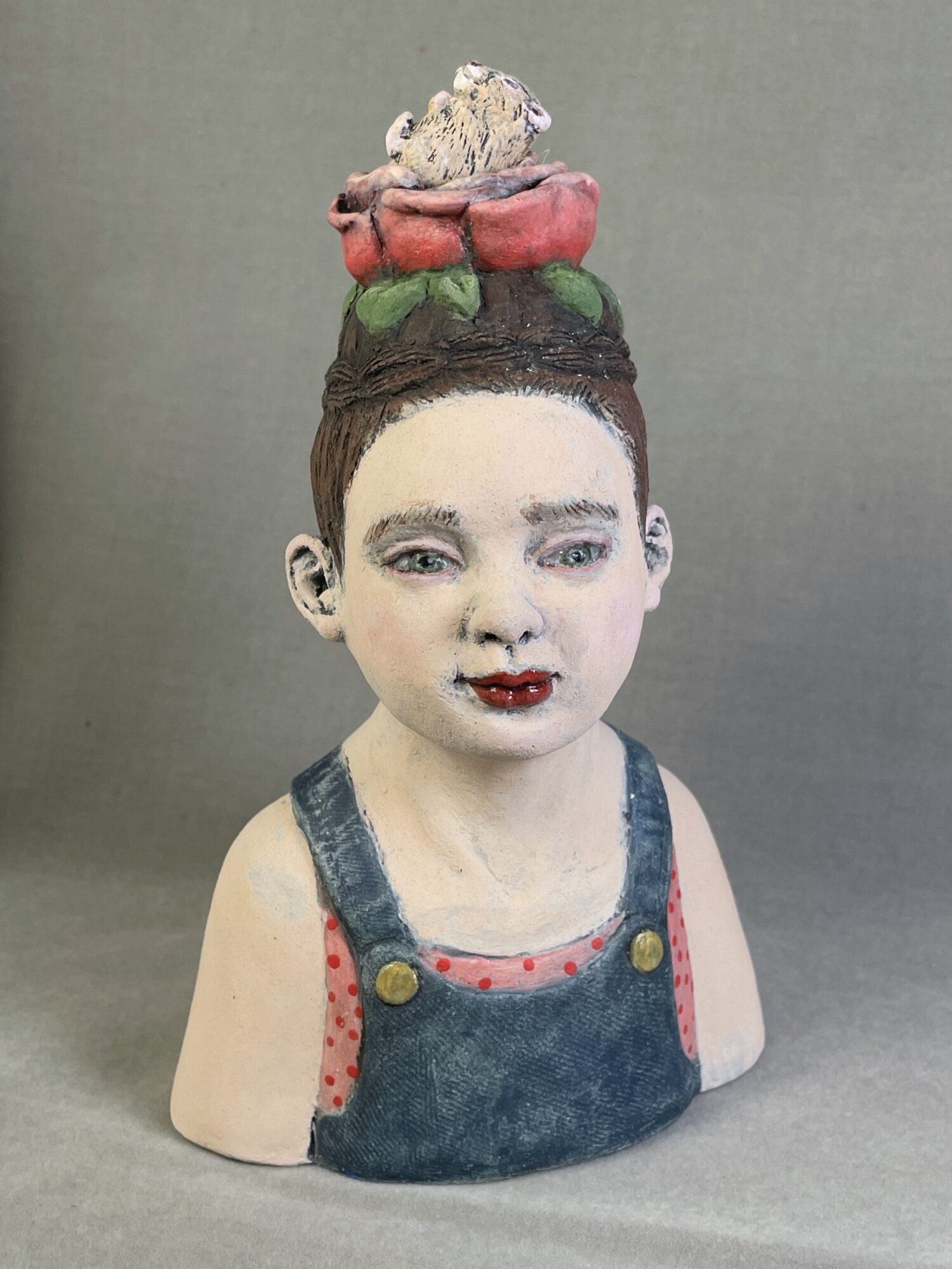 Medium: Hand-sculpted, half & half clay, underglaze
